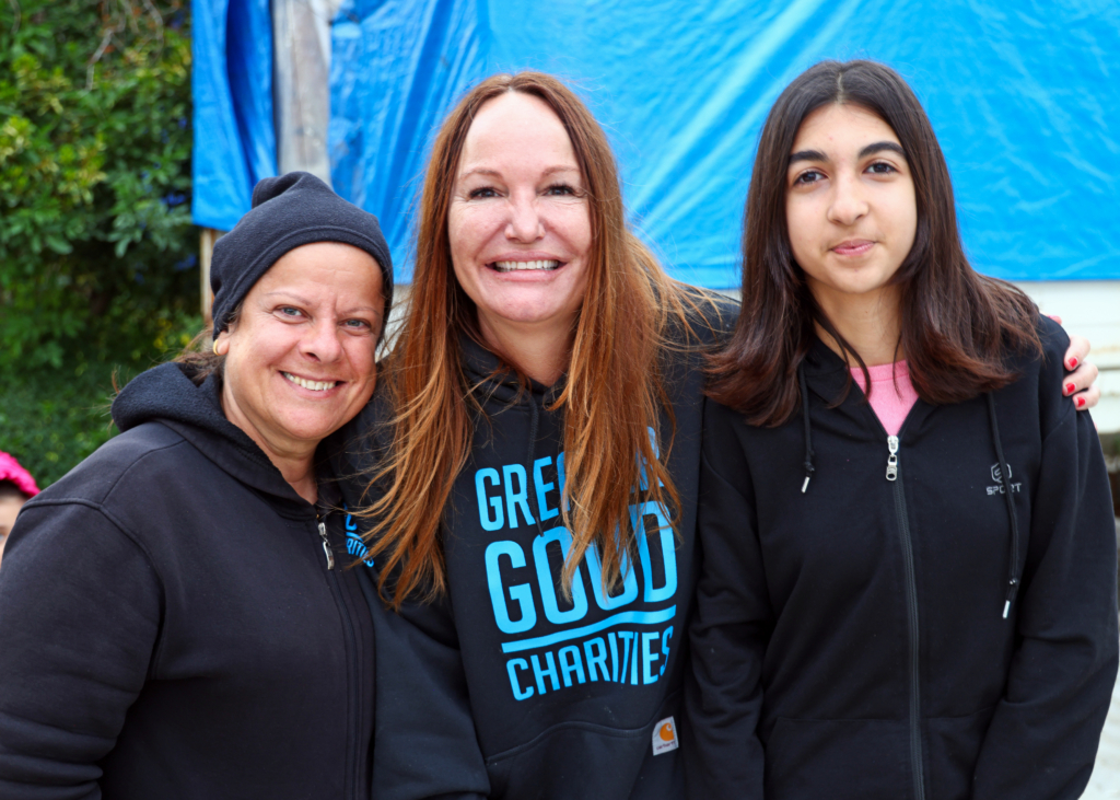 Greater Good Charities CEO Liz Baker arrived on the ground on March 24 to join the response efforts. Cooking and serving food to the locals, she heard their stories and joined in their laughter.