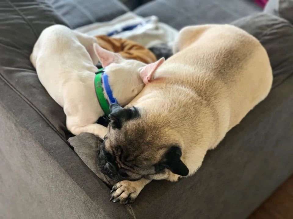 When she first arrived, PJ was timid and afraid to eat around them or go to the bathroom. She mostly kept to herself. However, she quickly blossomed into a playful companion. By day five, she had already started developing a regular routine, eating and cuddling with Casaundra’s two pugs and going outdoors with them. PJ also took a liking to the family’s cats, who loved her in return.