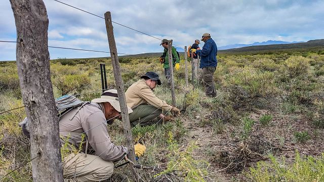The landscape surrounding the Lonco Vaca Volcano area in Argentina serves as an important wintering ground for guanacos––but the corridor is filled with dangers. Remnants of historical ranch infrastructure remain, including approximately 6 miles of interior fencing, pose a significant hazard to wildlife. Guanacos frequently attempt to jump the wires during migration.